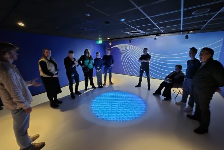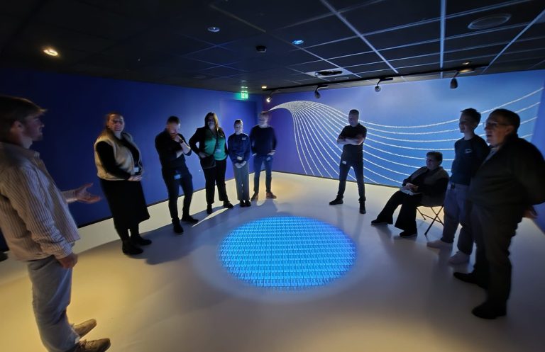 In het ASML Experience Center wordt de machine van ASML uitgelegd aan de familie van Arno.