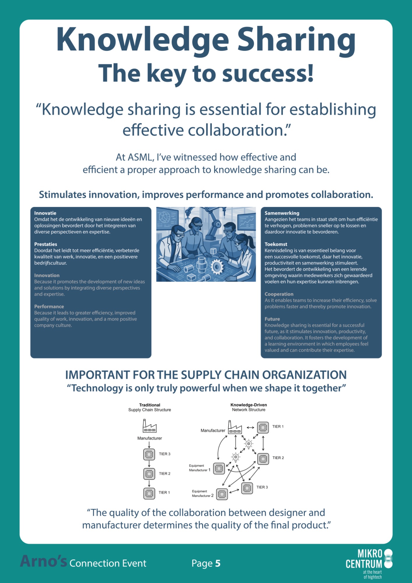 De kennis/relatie naar leveranciers werd door Arno vaak in gang gezet, kennisdelen is de stap naar samenwerken.