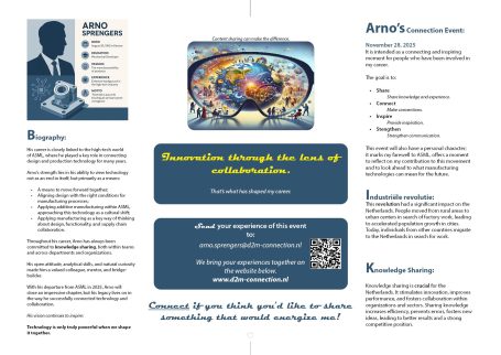 Ook had dit event een persoonlijk karakter, het markeren van mijn afscheid van ASML en bieden van een moment om terug te blikken op mijn bijdrage aan deze beweging, en vooruitkijken naar wat de fabricage technieken nog kunnen betekenen voor de toekomst.